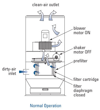 • 較小的粉塵會(huì)通過(guò)預(yù)過(guò)濾網(wǎng),而被高效的濾筒所過(guò)濾;